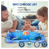 • The water mat provides a refreshing and soothing experience during tummy time, helping strengthen abdominal muscles and develop neck and upper body control.